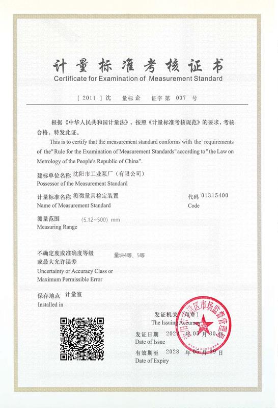 计量标准考核证书 指示…