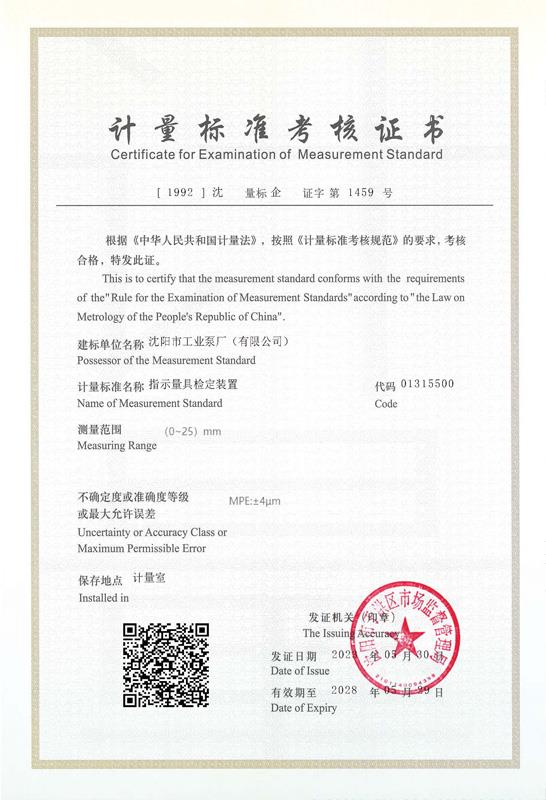 计量标准考核证书 测微…